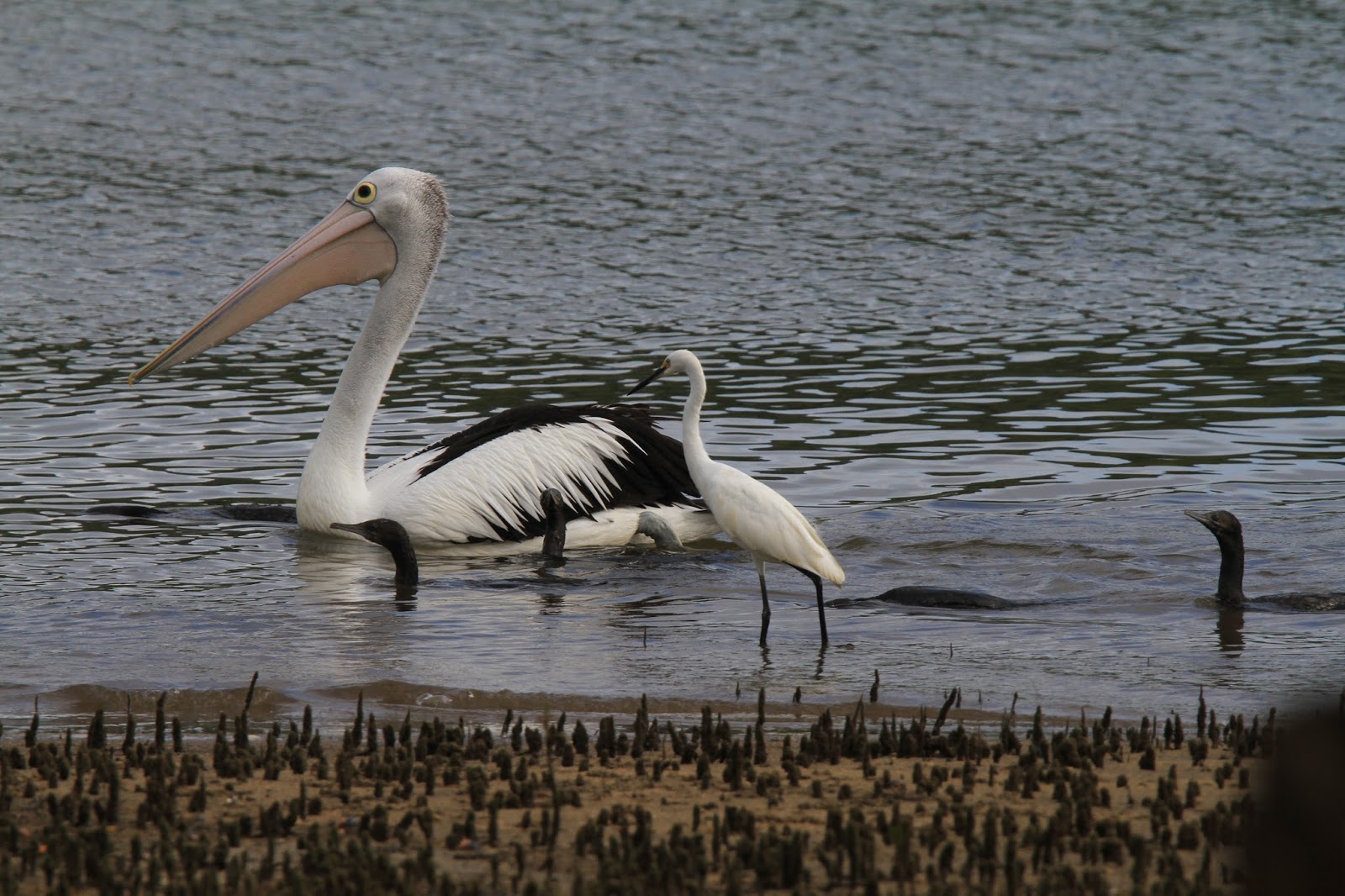 Every year a flock of little black cormorants arrive to feed in the Johnstone River estuary. Years ago I remember there was barely standing room on Crocodile Rock as dozens of cormorants dried off between fishing events. This year only four little black cormorants have arrived. The cormorants fishing expeditions are accompanied by Pelicans Cerino and Georgie-girl and a white and a grey reef egret and some days great egret joins in the fishing adventure.