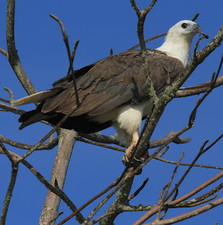I drew closer and white breasted sea-eagle allowed me to come so close to his tree that I could just fit him into the frame of my camera. He was aware of me but his concerns were with the Pacific baza which continued to call with increasing alarm.